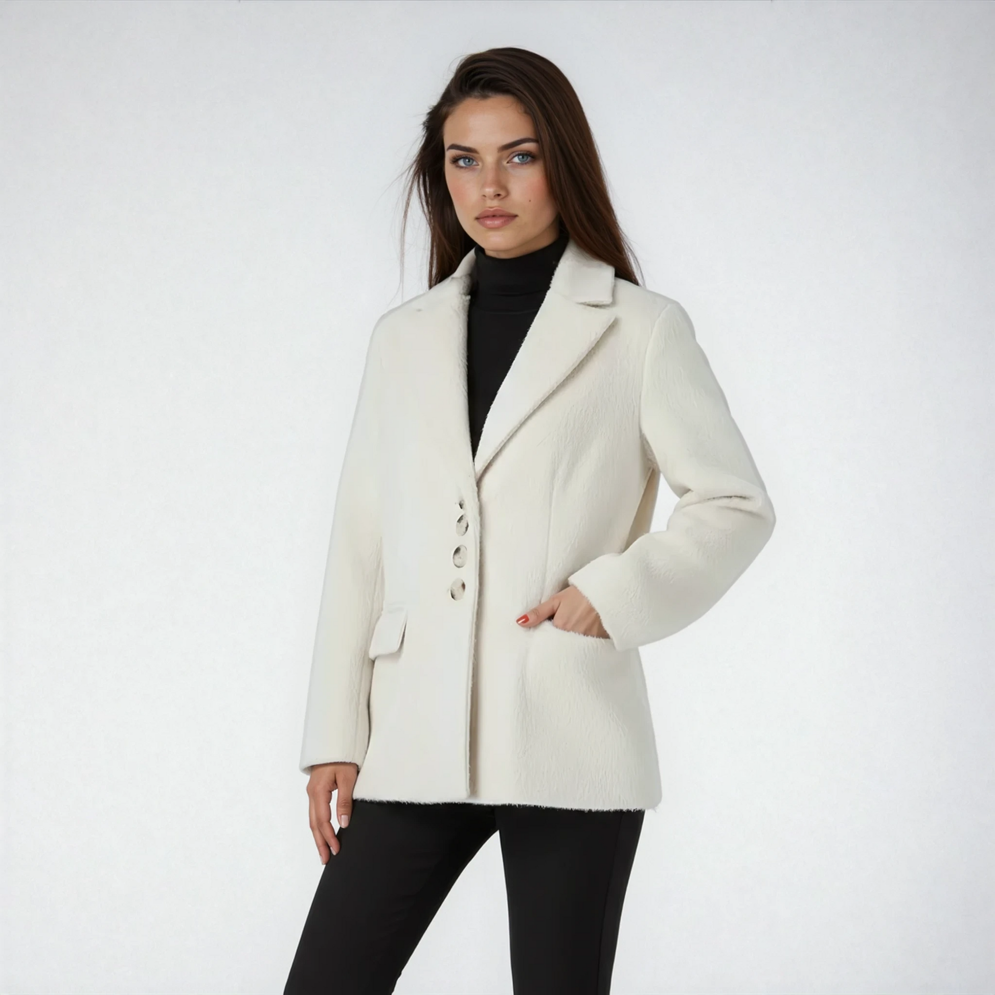 Marynarka Damska z Futerkiem | Elegancki Krótki Żakiet z Guzikami